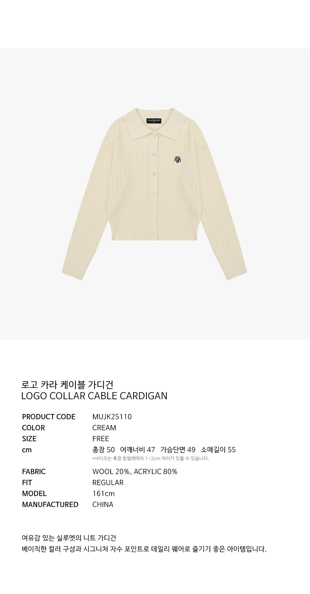 衣長 53.5 | 胸寬 50 | 袖長 56|肩寬 48.5 (CM)