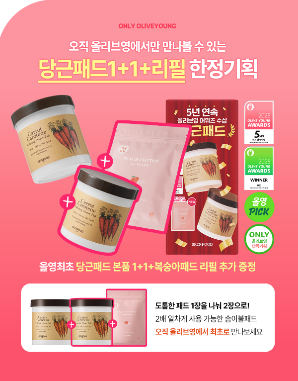 OLIVE YOUNG 預訂|SkinFood 純素胡蘿蔔素鎮靜護理棉片 SET